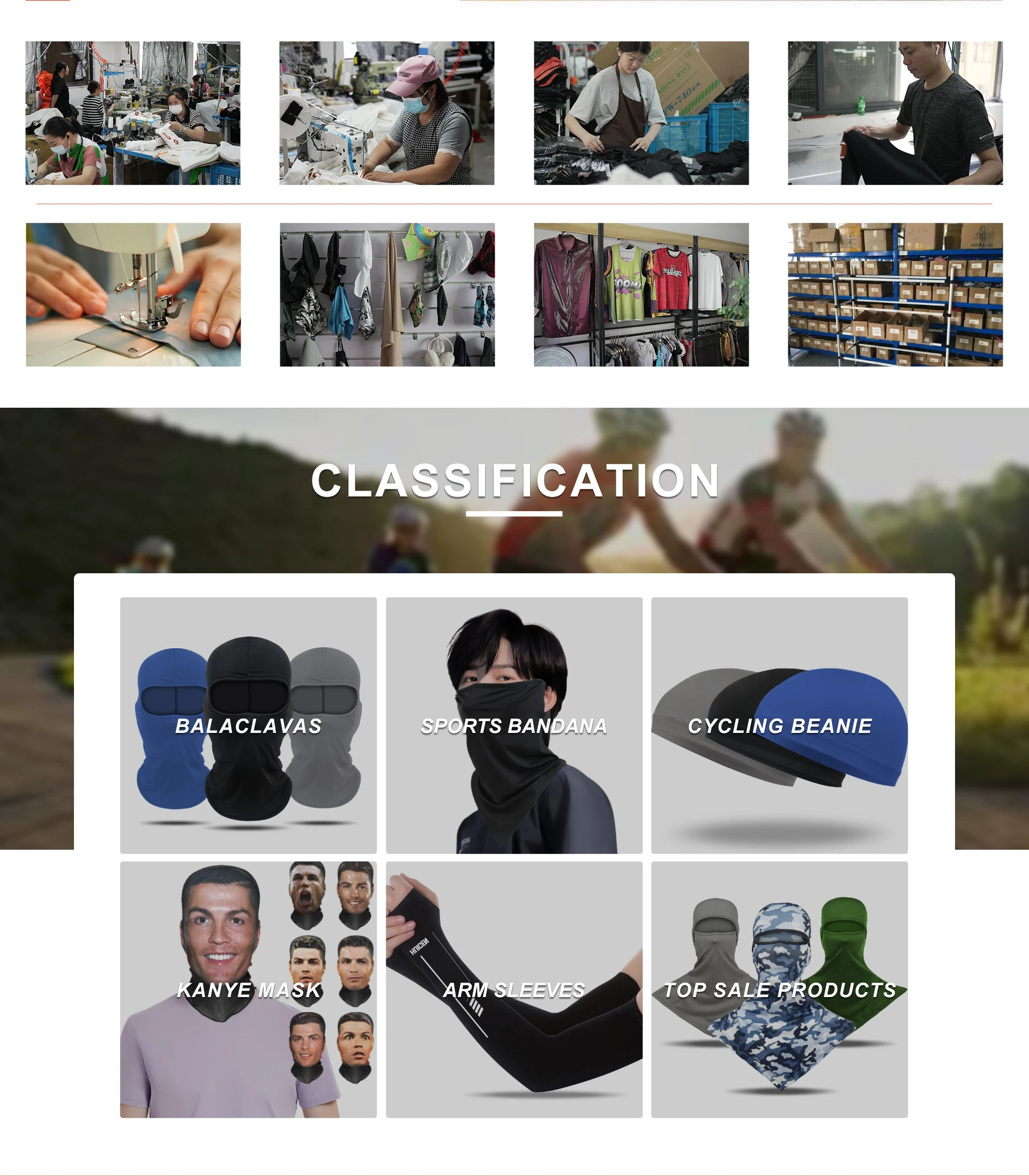 मुख्य उत्पादों: बालाक्लाव, बन्ना, बोनेट, हेडबैंड